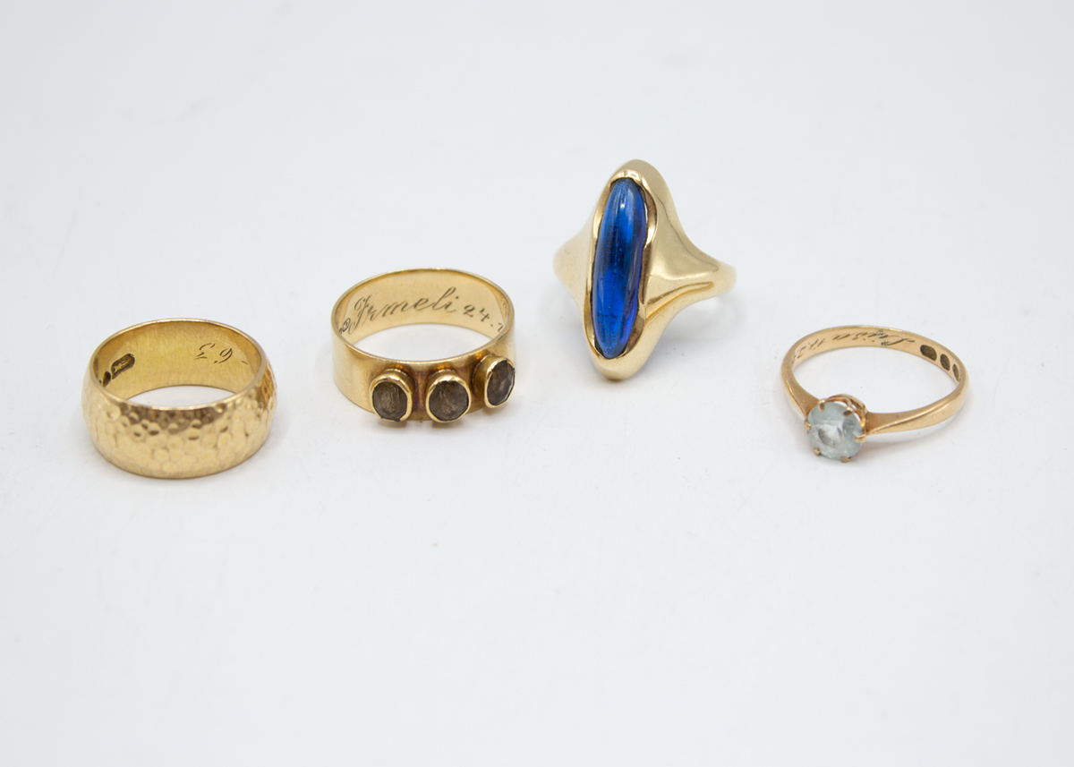 135: (13768-7) Erä kultaa 9,69g/585 br, 8,15g/750