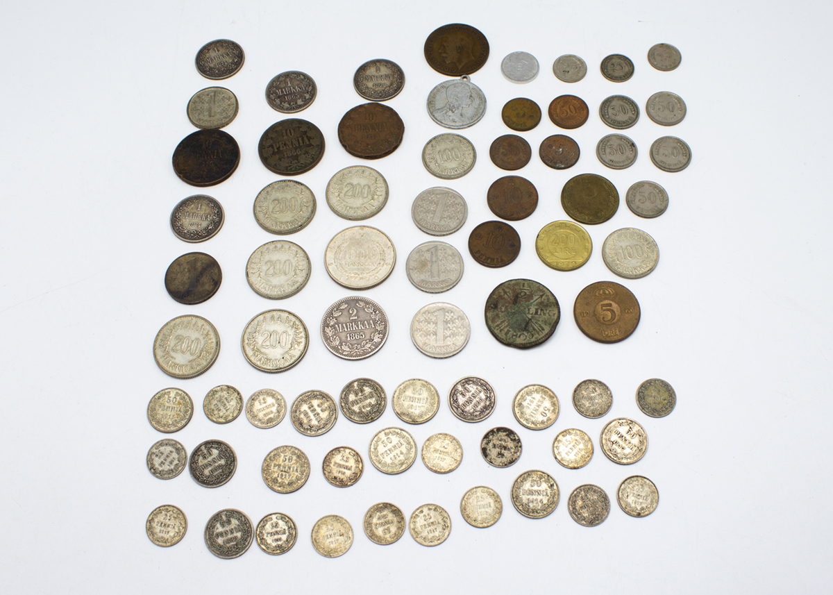 136: (13771-1) Vanhoja käyttörahoja, osa hopeaa 30,45g/868, 14g/875, 51,41g/750, 41,02g/500