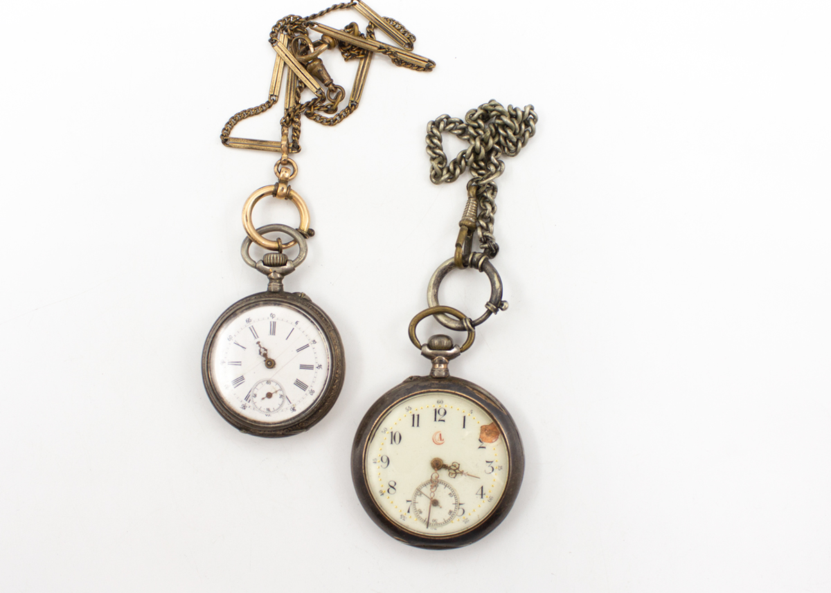 137: (13771-2) Hopeakuoriset taskukellot 2 kpl 138,54g/800 br.