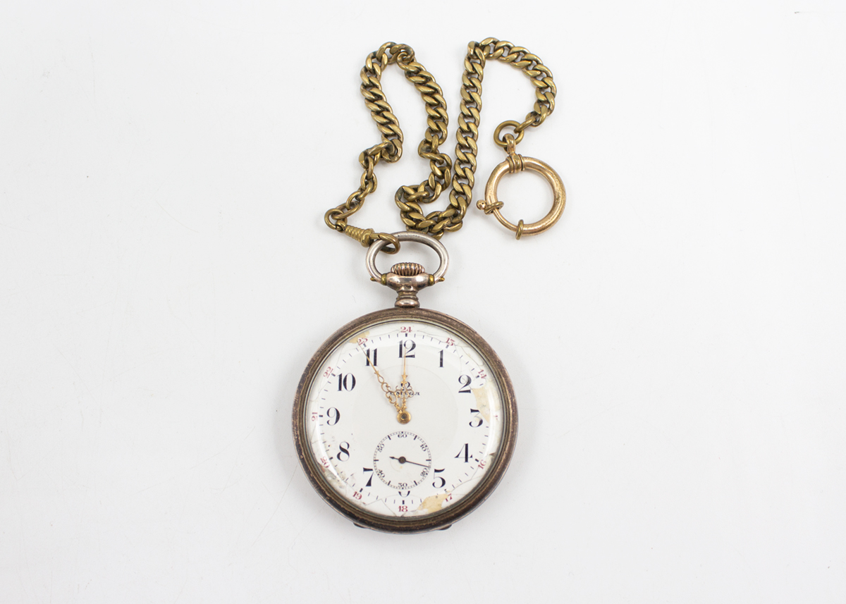 159: (13812-3) Hopeakuorinen taskukello Omega 96,03g/800 br.