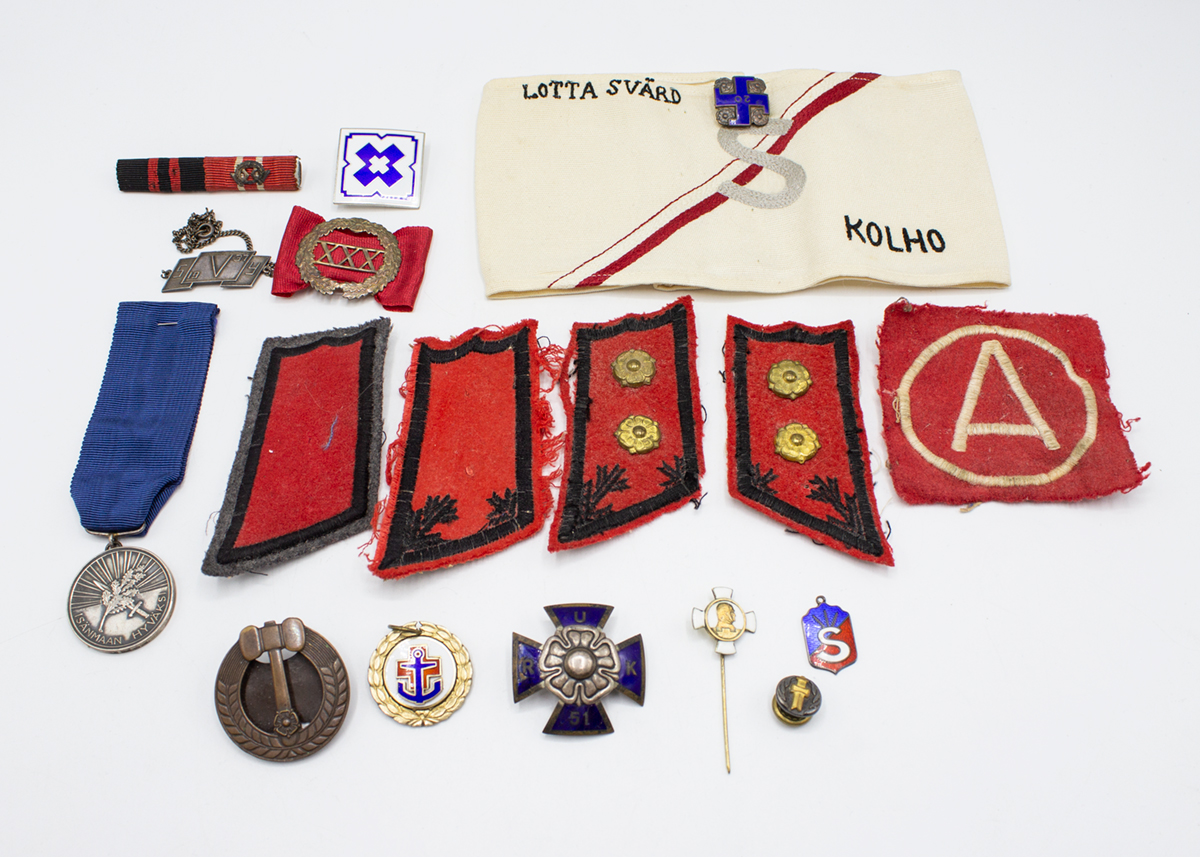 161: (13812-5) Mitaleja, ansio- ja hihamerkkejä, osa hopeaa 32,45g (813, 830, 925) br.
