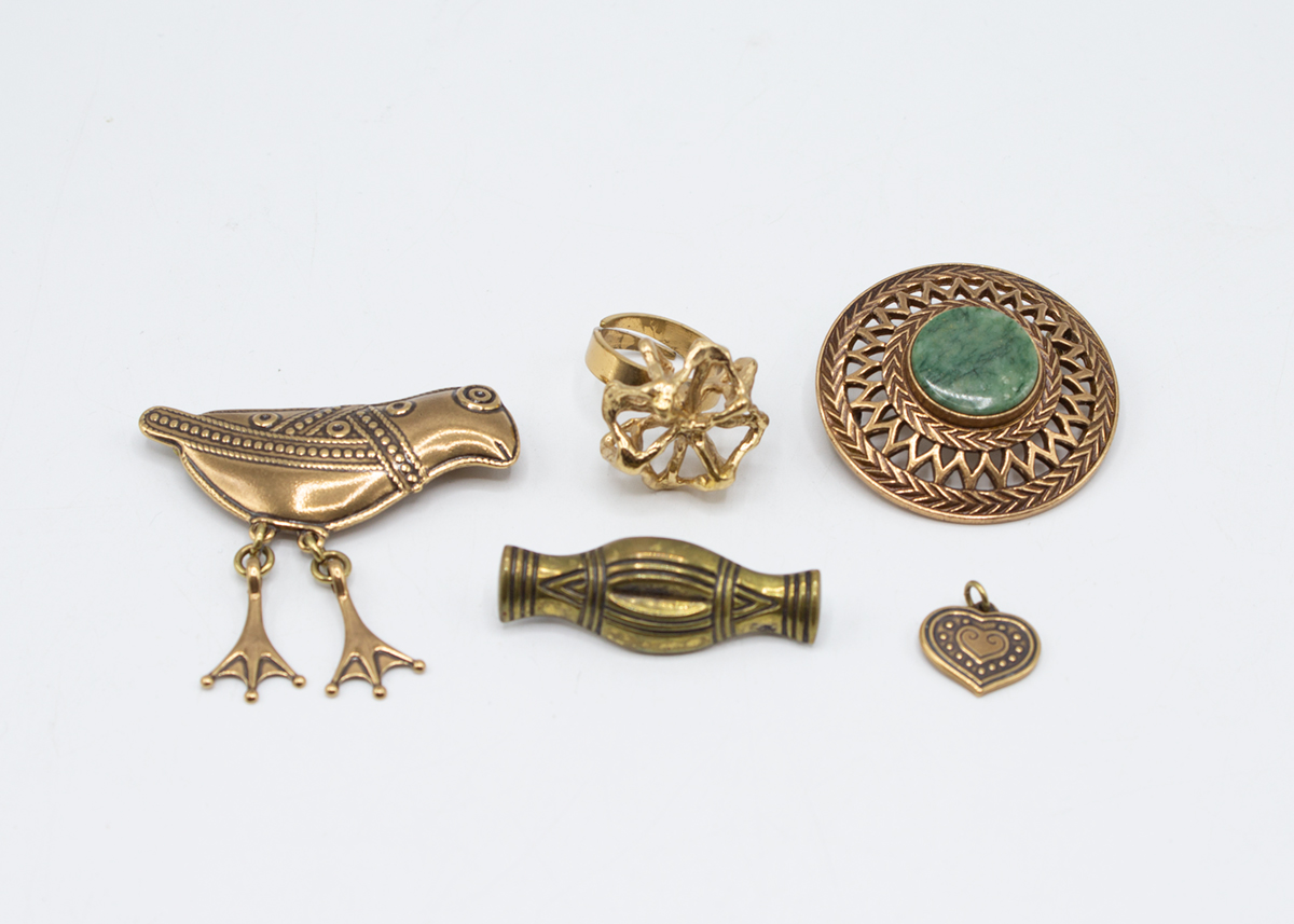 203: (13865-4) Erä pronssikoruja mm. Kalevala