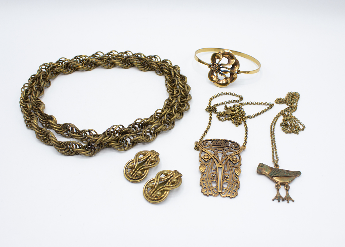 107: (14024-1) Erä pronssikoruja mm. Kalevala