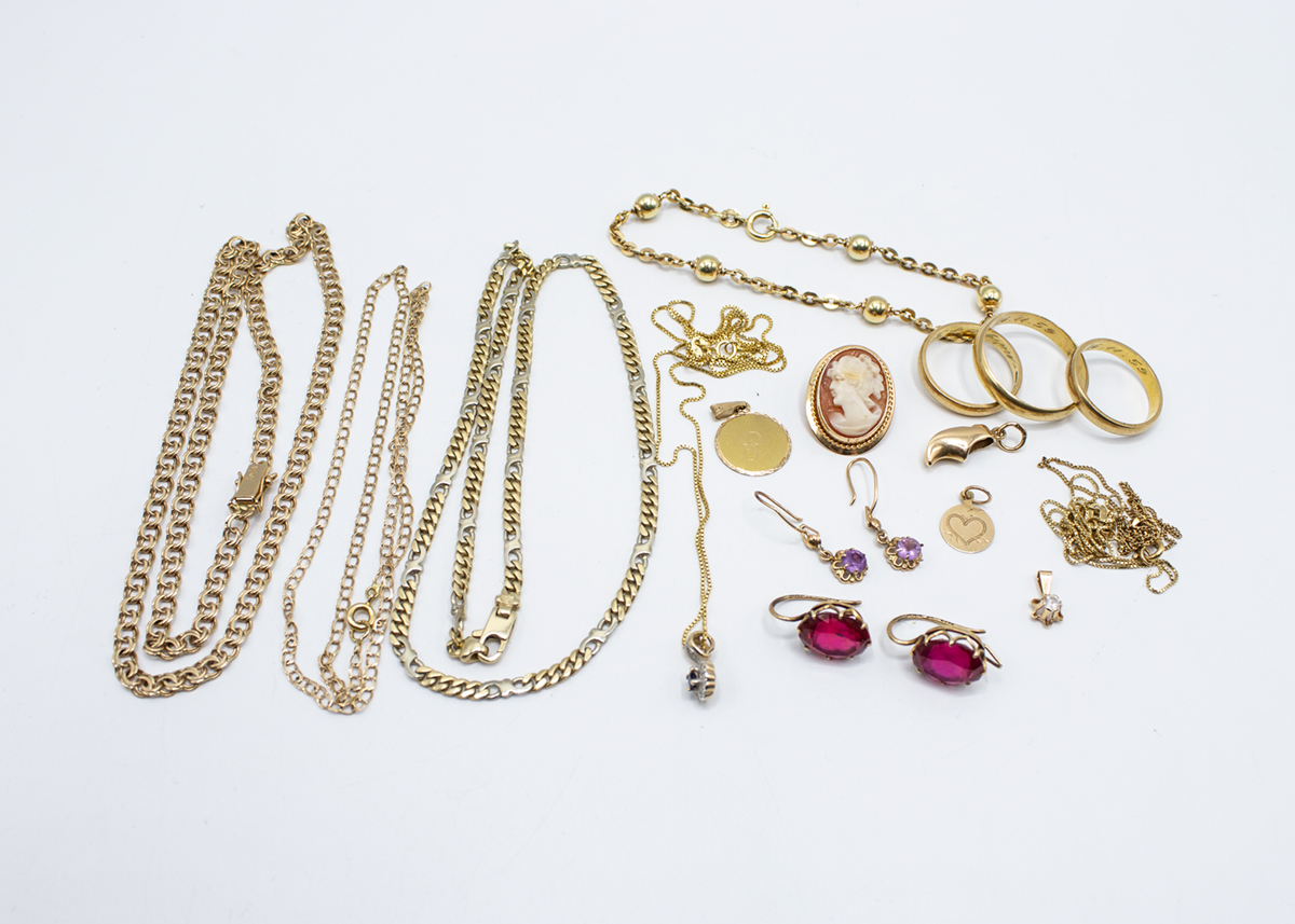 122: (14042-2) Erä kultaa 44,84g/585 br., 12,11g/750