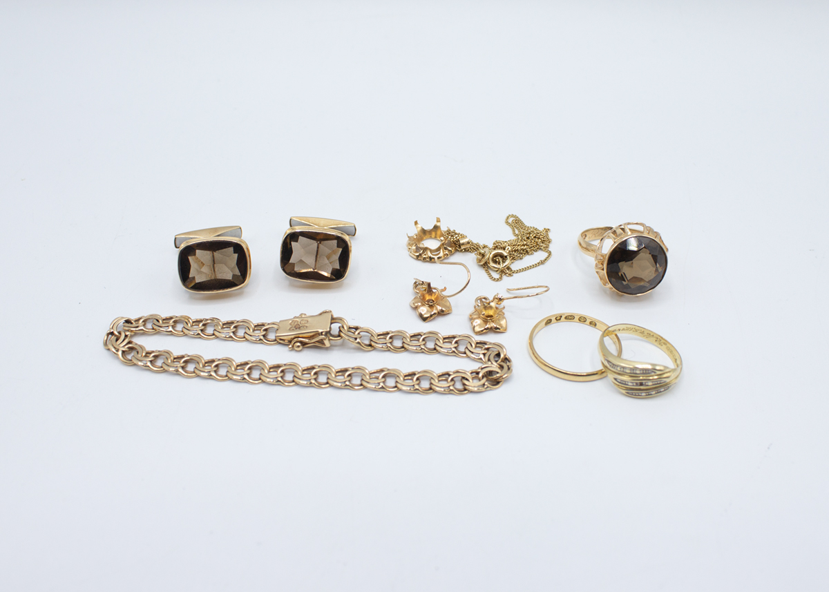 124: (14049-1) Erä kultaa 29,06g/585 br, 1,93g/750.