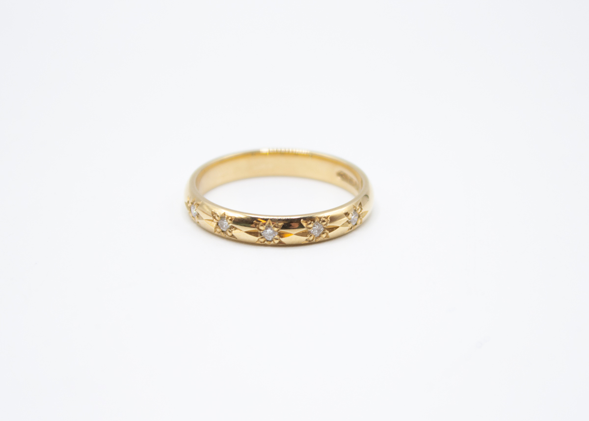129: (14045-2) Timanttisormus 5x0,02ct, 2,89g/585 br.