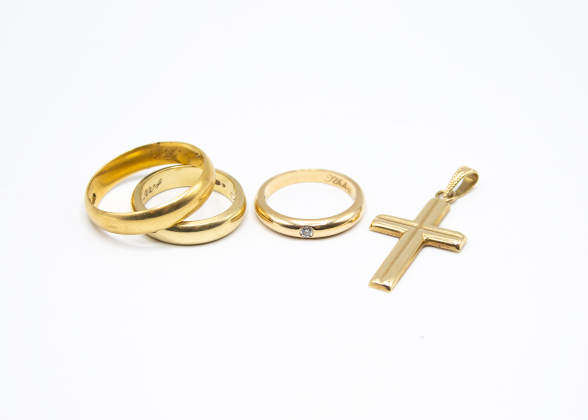 133: (14058-1) Erä kultaa 11,08g/585 br, 5,65g/750