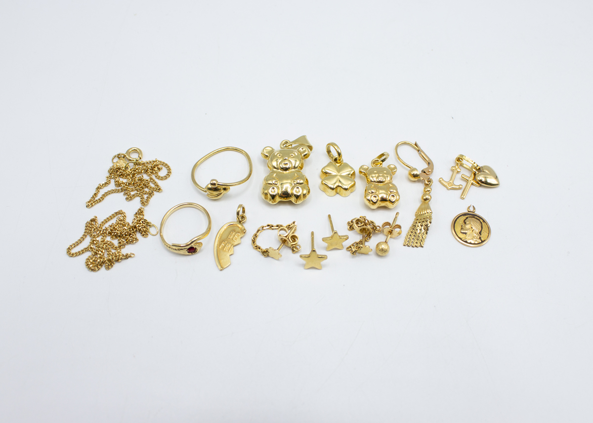 195: (14198) Erä kultaa 22,18g/750