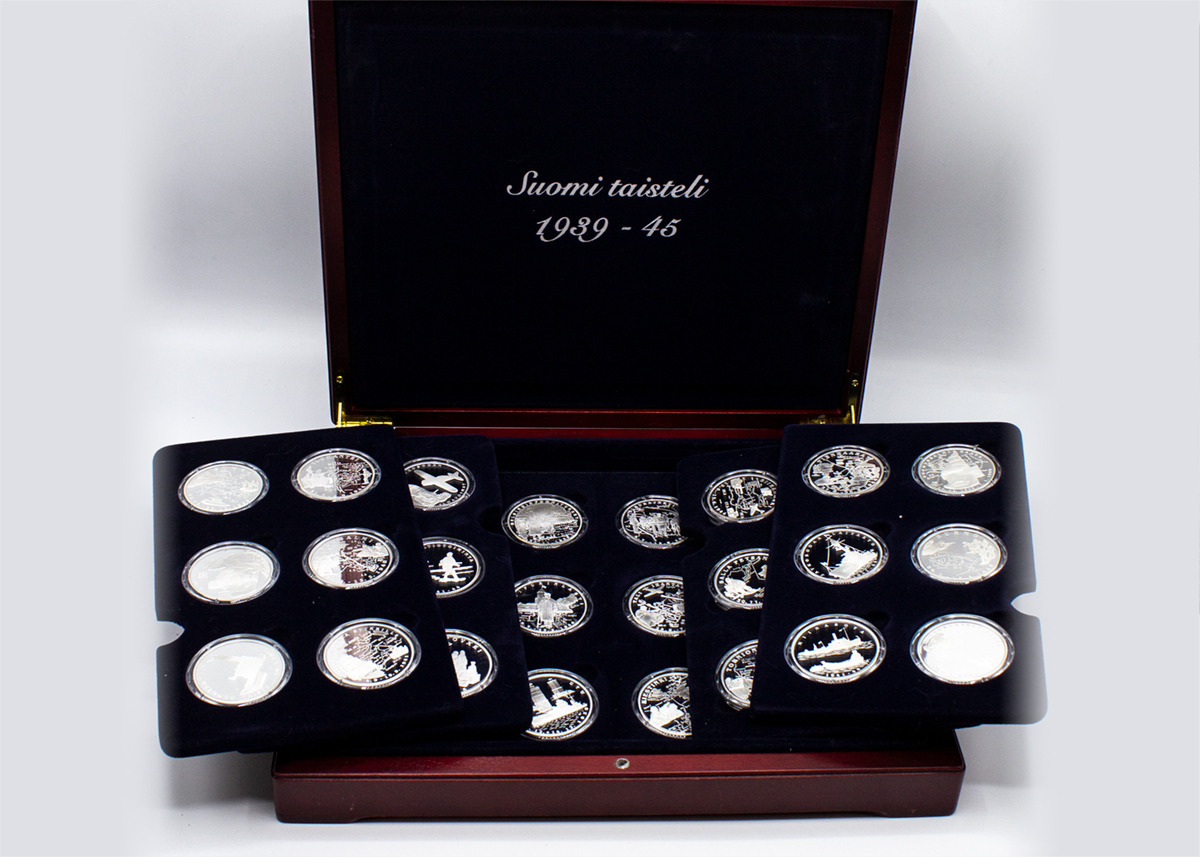 215: (14271) Hopeamitaleja Suomi Taisteli 36 kpl 936g/925
