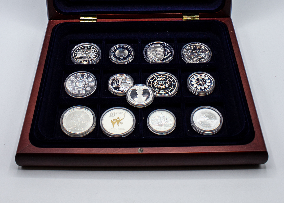 222: (14312-7) Euroopan juhlarahoja 13 kpl 276,68g/925, 22,2g/900