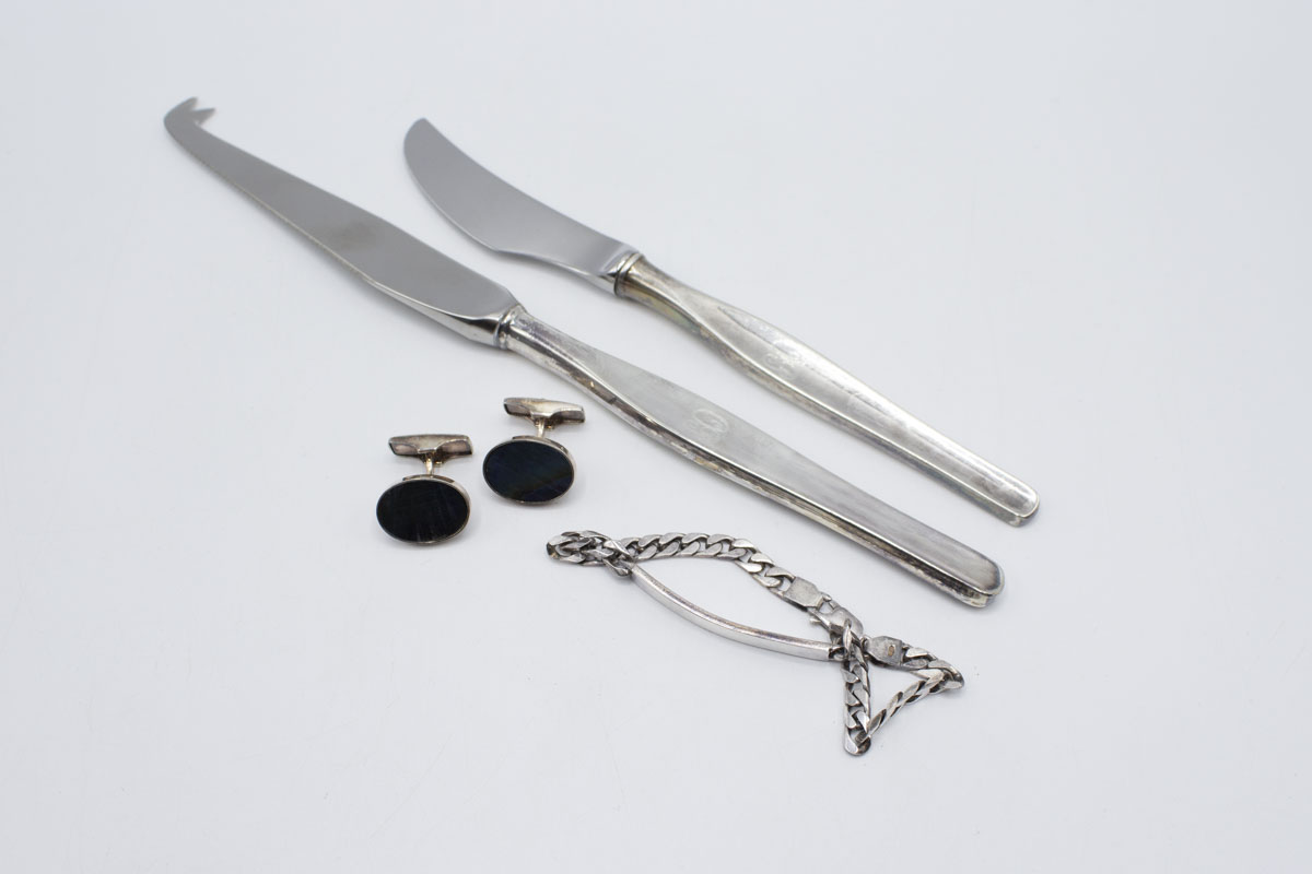 34: (15450-3) Erä hopeaa 21,99g/925 br, 81,12g/830 br.