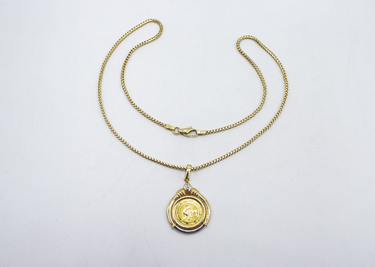 257: (16046) Kaulaketju ja riipus kultarahalla 5 dollaria 12,50g (999, 750)