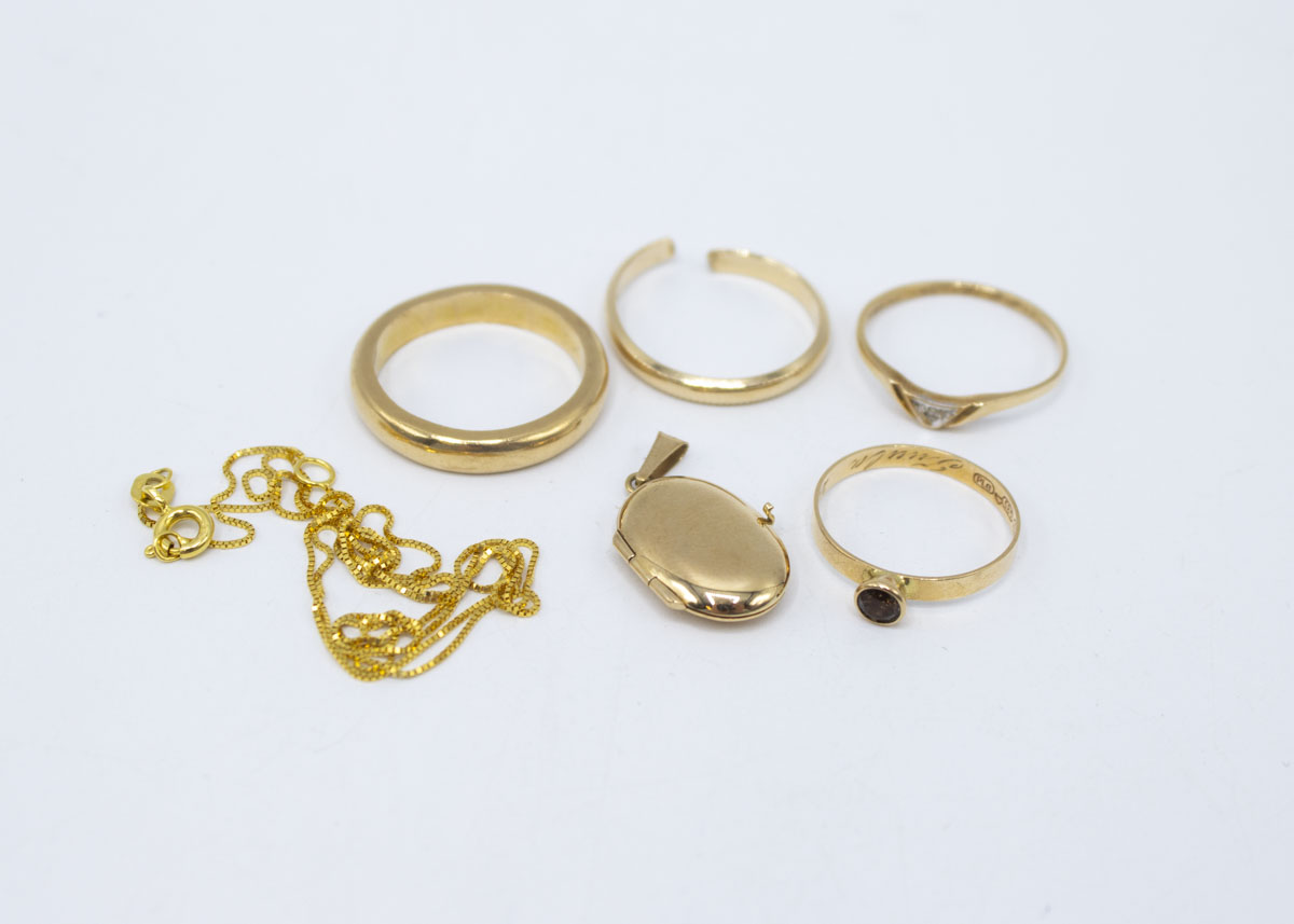 335: (16249-1) Erä kultaa 7,29g/750, 6,54g/585 br.
