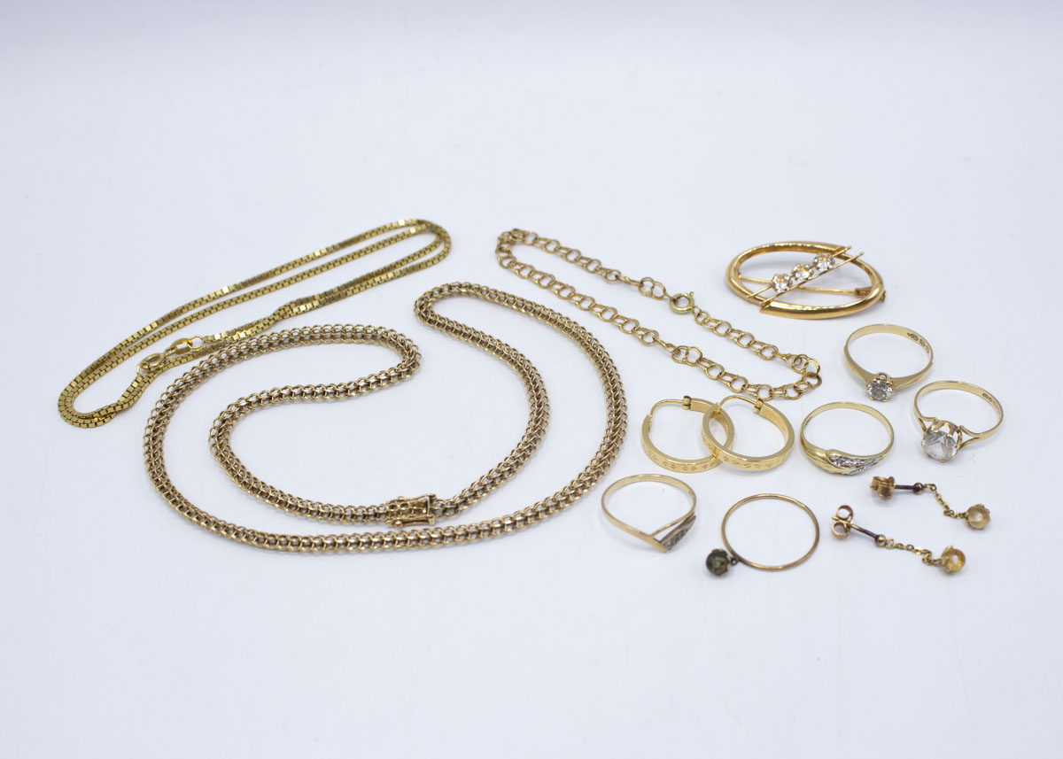 343: (16300-1) Erä kultaa 1,81g/750, 28,28g/585 br.