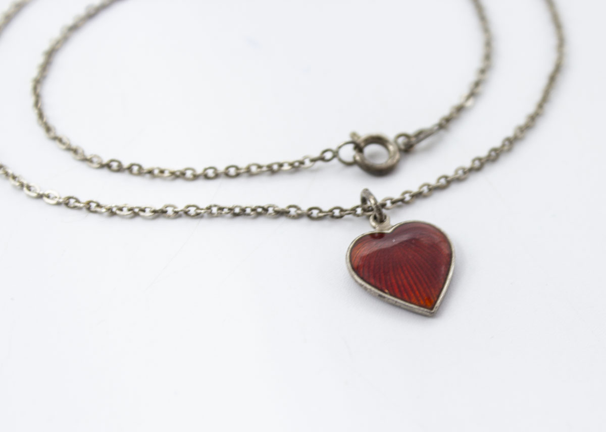 359: (16303-8) Emaloitu sydänriipus, Tillander 4,60g/925 br.